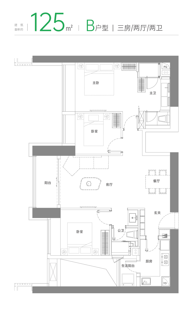 125室3厅2卫1厨 建筑面积:125.00㎡